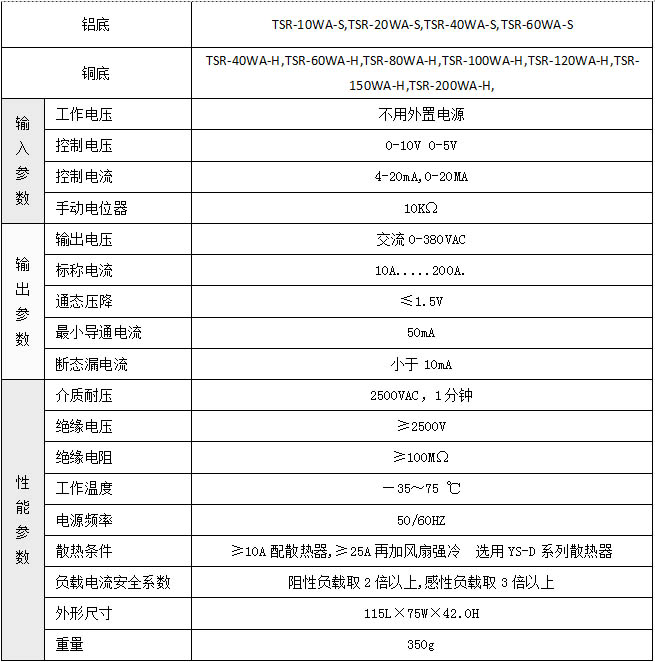 三. 以下是三相固態(tài)調(diào)壓器參數(shù):