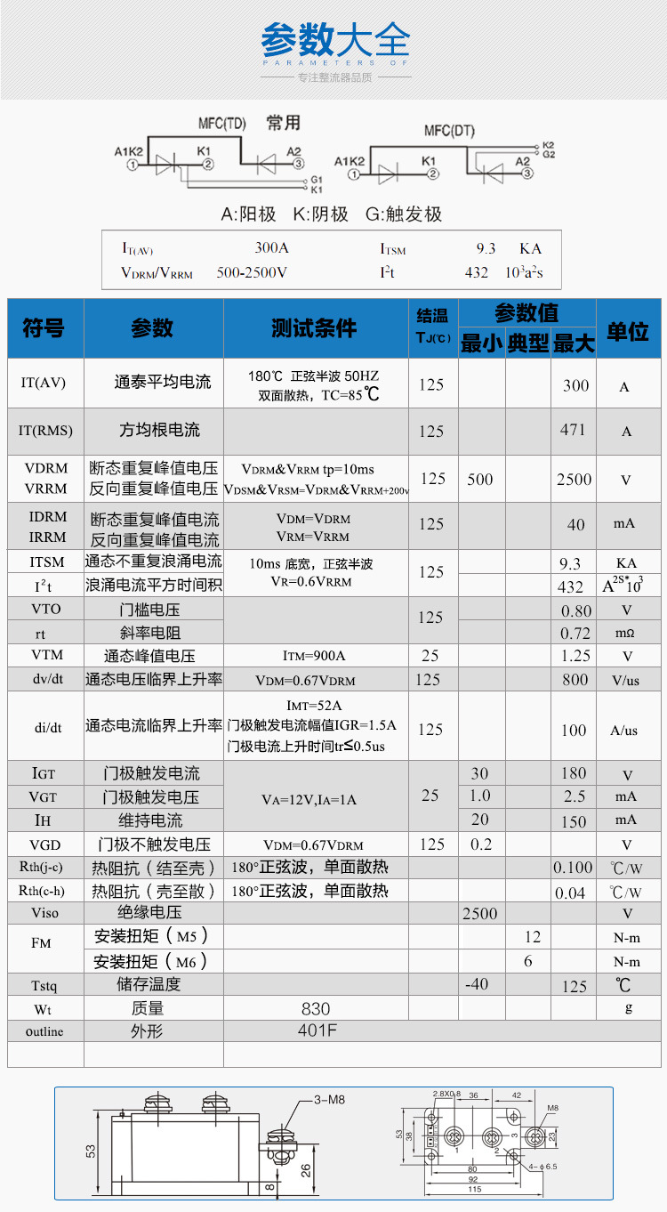 MTC-300A可控硅模塊